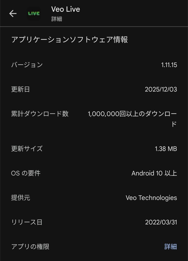 はじめに › フォーラム › Veo Liveアプリ › Android Version1.11.15